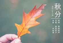 落葉知秋,光陰流轉,一年一度的秋分又悄然來臨。 秋分,在每年的9月23日前后。秋分當日,太陽直射赤道,晝夜均分,各12小時,故秋分是晝夜平分之意。秋分之后,北半球晝短夜長,天黑得越來越早。同時,秋分是秋季的第四個節氣,在秋季的正中,平分了秋季,從此開始進入深秋時節。