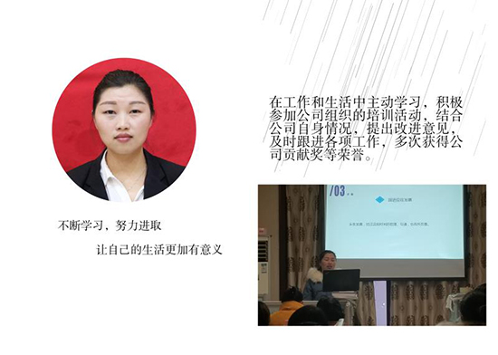 此次會議,財務部的楊娟女士、張敏女士通過等級評定,成功晉升為技師等級。兩位女士主要通過對自己工作內容的深度解析以及工作方面的取得成績進行深刻闡述,同時也表示在今后的工作中還是要不斷學習,增加自己的知識庫,更好的服務工作,提升自我價值。