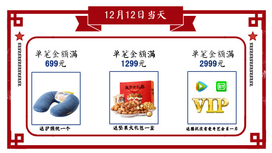 第一重:單筆滿送好禮,拒絕套路,僅限雙十二當天哦!