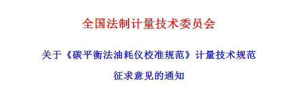 近日,根據國家市場監督管理總局辦公廳市監計量(2019)42號文件《市場監管總局辦公廳關于下達2019年國家計量技術規范制定、修訂及宣貫計劃的通知》工作安排,《碳平衡法油耗儀校準規范》國家計量技術規范由全國法制計量管理計量技術委員會歸口,已經完成了征求意見稿,現在面向全國公開充分征求意見。