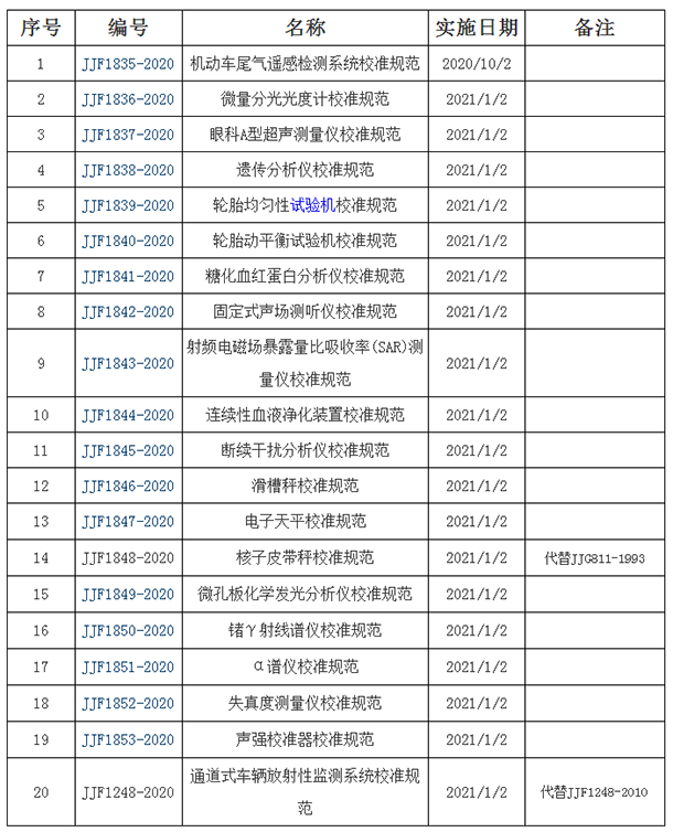 市場監(jiān)督總局發(fā)布20項計量技術規(guī)范