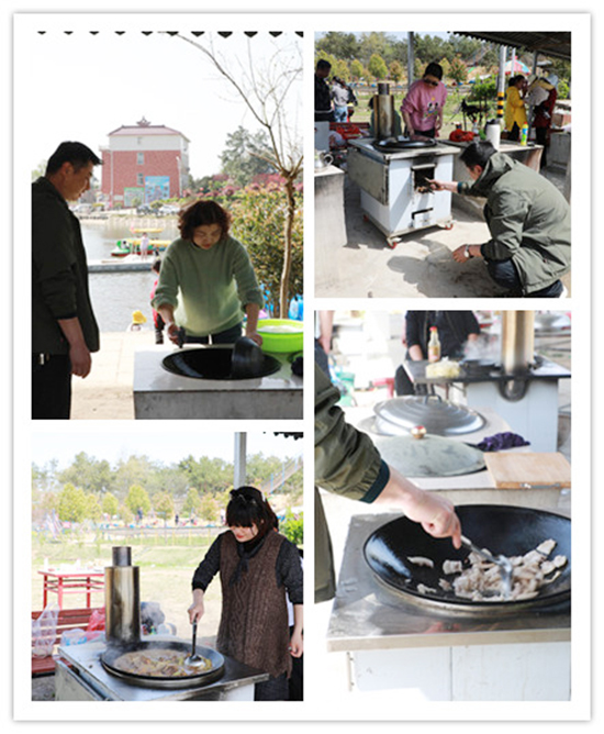 所有食材和工具都是自備的,自己動(dòng)手才能完美的體驗(yàn)其中的樂(lè)趣呀!所有人都積極參與進(jìn)來(lái),分工明確,各盡其職。細(xì)膩的女同事們正在有條不紊地清洗著生菜、小龍蝦等食材;長(zhǎng)廊下的鐵鍋,火被燒得旺旺的,手藝高超的同事們?yōu)榇蠹页尸F(xiàn)獨(dú)家秘方的原生態(tài)炒雞;燒炭、架爐子,烤串,有經(jīng)驗(yàn)的男同事已經(jīng)開(kāi)始進(jìn)行烤串的預(yù)熱工作了。很快就做好了燒烤前的各項(xiàng)準(zhǔn)備!