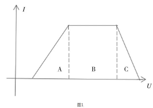 從大方向來考慮,交流充電樁與直流充電機的檢定有諸多相通之處,但充電樁在檢定和使用中都要注意恒功率區域問題。如圖1所示,A、C區域為低電流情況,充電效率低,容易炸機;B區域為恒功率區域,適合檢定。