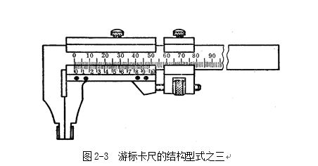 (2)測量范圍為0~200mm和0~300mm的游標卡尺,可制成帶有內外測量面的下量爪和帶有刀口形的上量爪的型式,如圖2―2。